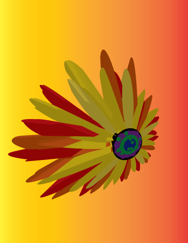 What I did for this project was chose a symbol, the symbol was a flower. I used an editing tool to turn the symbol into a 3d image, soon after that I used a coloring tool. After the using the coloring tool i used a feature that turned the background yellow and orange.